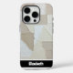 This customisable phone case showcases an abstract, mosaic-like design with varied geometric shapes in sophisticated beige, white, and light brown tones, offering a modern, textured aesthetic. The unique, painterly appearance adds an artistic touch to your device. A sleek black bar at the bottom is ready for personalisation with a custom name like "Elizabeth"; if you don't want a name, you can remove it and any other elements you don't like from within the design tool, creating a truly unique accessory.