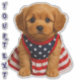 Create your own unique statement with this customisable Patriot Puppy sticker! Featuring an adorable golden retriever puppy in an American flag dress, you can add your own text to make it truly special. Perfect for laptops, water bottles, cars, or as a personalised gift for dog lovers and patriots.