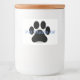 This food label jar features my paw print pattern. The design adds a simple and fun touch! Customise the text with any pet name to make it extra special.