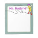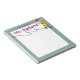 Our Personalised Pencil Scribble Green Unlined Notepad features a cartoon pencil drawing a squiggly line. The notepad consists of a solid border colour with a white box for your handwritten notes to parents, students, and other faculty. Personalise and order your teacher's notepad today!