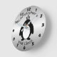 Wall clock penguin design. You can customise this wall clock with any text of your choice. Should you require any help with customising then contact us through the link on this page. Personalised penguin wall clock