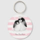 Personalised Penguin Heart Button Keychain Pink