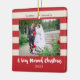 This square Christmas ornament is the perfect gift for the newlyweds. It features a trendy red and tan stripe background, customisable photo frame and customisable text for names of the bride and groom and the year. The backside is the same bold stripe pattern.