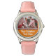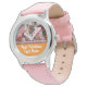 Personalised Photo and Text Girly orange Pink Hearts Cute Watch with bubbly pink hearts frame