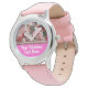 Personalised Photo and Text Girly Pink Hearts Cute Watch with bubbly pink hearts frame