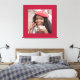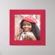 Personalised Photo and Text Memorial Red Canvas Print, a simple, chic and modern design with sophisticated serif font, custom name, date and photos, for an elegant and sophisticated look. No minimum order.