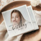 Modern birthday party napkins featuring a custom photo. Easily replace the sample image with a photo of the guest of honour. The word "birthday" appears in elegant black handwriting script. Personalise the text with the name and birthday year in black sans serif font. A white gradient overlay helps make the text pop.