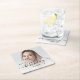 Modern birthday party paper coasters featuring a custom photo. Easily replace the sample image with a photo of the guest of honour. The word "birthday" appears in elegant black handwriting script. Personalise the text with the name and birthday year in black sans serif font. A white gradient overlay helps make the text pop.