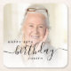 Personalised Photo Black Script 80th Birthday Square Paper Coaster