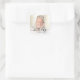 Modern birthday party stickers featuring a custom photo. Easily replace the sample image with a photo of the guest of honour. The word "birthday" appears in elegant black handwriting script. Personalise the text with the name and birthday year in black sans serif font. A white gradient overlay helps make the text pop.