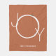 This terracotta, rust Christmas Fleece Blanket is decorated with the word JOY.