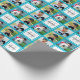 Aqua teal turquoise blue background with your first or last name, and single letter initial monogram, add your 3 favourite digital photos to this unique and custom personalised collage photomontage monogrammed gift wrap!