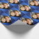 Personalised photo family couples photo blue wrapping paper