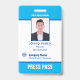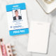 Customised press pass template design for special events. Add your employee photo and information. Customise with name, email, website, etc. on reverse.