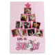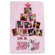 Cute pink Christmas tree with your added photos to personalise. “Let it Snow” typography with pink snowman adds to this festive design.