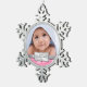 My first Christmas Personalised photo template Snowflake ornaments. Add your own photo and custom text. Bubblegum pink and white snowflakes.