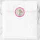 Adorable personalised photo, name and age birthday pink classic round sticker.
