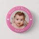 Adorable personalised photo, name and age birthday pink button.