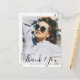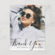 a photo overlay card design with a custom photo and black script text. Feel free to personalise the image and thank you message at the back.