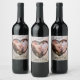 Pretty personalised wine bottle labels for weddings or anniversaries. Add the couple's photo and wedding date onto the label in the customise area.