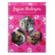 Add a personal touch to your notes with this adorable pink notebook featuring a playful red paw print pattern. Customise it with your name, title, and three hexagon-shaped photos to make it uniquely yours. Perfect for cat lovers, this notebook is ideal for journalling, sketching, or planning your day. A thoughtful gift or a special treat for yourself, bringing a dash of charm and personalisation to every page!