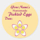 The canning stickers say, "Your Name's Homemade Pickled Eggs." Add your name to the template to personalise.