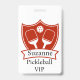 This fun design features an eye-catching red emblem with two paddles and ball: Just add your name and funny text underneath. This one says—Pickleball VIP. Perfect for pickleball enthusiasts of all ages who want to show off their love for the sport. #vip #pickleball