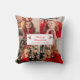 Modern photo Christmas throw pillow with a simple design featuring a photo collage of your 8 of favourite pictures, four on the front and four on the back. Square pictures work best. In the middle is the greeting "Merry Christmas" along with your name(s) and year in red over a white background. This personalised holiday throw pillow is a great gift for grandparents or as an addition to your holiday home decor.