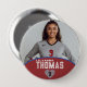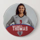 Show your support for your favourite volleyball player this season with this personalised picture player game day button featuring school colours of maroon, blue and grey. Customise with your player's name, number, and picture! Perfect for senior night or parents night! Go team!