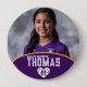 Show your support for your favourite volleyball player this season with this personalised picture player game day button featuring school colours of purple and gold. Customise with your player's name, number, and picture! Perfect for senior night or parents night! Go team!