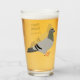 Drinking glass with a pigeon bird design that you can customise with any text of your choice. Should you require any help with customising then contact us through the link on this page.Pigeon glass