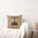 Personalised pillow with burlap print and pine trees with the coordinates.