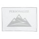 Personalised pillowcase cover sleeve design for bed pillow. Custom print home decorations. Trendy bedroom decor for new home, hotel, b&b or mountain cabin. Personalizable with name, monogram, quote, slogan, saying etc. Custom background colour. Cool gift idea for new house or housewarming party. Mountain peak logo template.