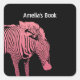 Personalised Pink and black Zebra Bookplate Square Sticker
