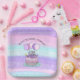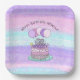 Personalised Pink and purple pretty hand drawn birthday cake with sprinkles and balloons, hearts and stars girl's birthday party paper plates.
