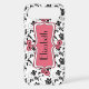 You can personalise the name on this chic and trendy black and white damask floral, pink tag iPhone case.