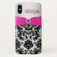 Personalised Pink, Black, Silver Damask iPhone X Case-Mate iPhone Case