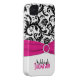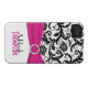 Personalised modern pink, black, and white floral damask Case-Mate Barely There™ iPhone 4 Case.