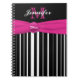 This monogrammed hot pink, black, and white stripes notebook has template boxes for you to add your name, monogram, year, or other text. If you need help customising this item, please email niteowlstudio@gmail.com for assistance.