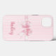 Add a sweet, feminine touch to your phone with this Personalised Pink Bow Striped iPhone Case. Featuring soft blush pink stripes and a delicate watercolor bow, this design gives your device a stylish, gift-wrapped look! Personalise it with your name or initials for a truly custom accessory.