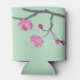 Create a small personalised gift. This foam can sleeve is mint green with illustrations of pink cherry blossoms. There's a spot to add a name in script lettering on the front of the insulated can holder.