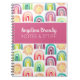 Cute customised rainbows and suns notebook for kids going back to school with a pink banner. Rainbows feature various colours, from teal to purples to greens, coupled with the warm yellows and oranges of the sun - giving a cool, bohemian look. Simply add your child's name and the notebook purpose for a personalised look. Originally painted with watercolors.