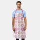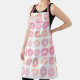 Personalised apron with pink doughnuts. The doughnut pattern was originally painted in watercolor and includes a variety of glazed doughnuts, sprinkles and iced doughnuts, all in shades of pink. The template is set up for you to add your name in bold brush script.