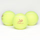 Pink Customised personalised tennis balls printed with custom name or text in a modern feminine girly pretty script font and simple tennis racquet monogram icon logo.