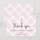 Featuring a delicate pink background with a beautifully printed gold cross, the card is adorned with a white circle pattern that adds a touch of elegance and reverence. Personalise it with the child's name and a custom greeting, making each thank you card a special and thoughtful token of appreciation.