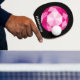 Personalised name pink gemstone logo design ping pong paddle for table tennis. Cool sports / game gift idea for kids (boys and girls). Custom background colour. Fun present for player and coach. Nice sporty Birthday or Christmas gift for children; son, daughter, grandchild, granddaughter, grandson, etc. Add your own name or slogan.