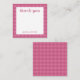 Personalised stationery enclosure notecard with a pink gingham pattern in notes of dark deep and vibrant rose pink with the sentimental words "thank you". Tuck it into a flower bouquet or meaningful gift. These minimal flower shop inspired enclosure cards bring a retro kitchen vibe to your most thoughtful moments.