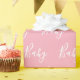 Elegant pink girly background with whitel personalised “baby” script wrapping paper. Perfect for a pink baby shower for a girl.