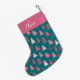 Personalised Pink & Green Christmas Tree Pattern Small Christmas Stocking