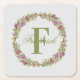 Personalised Pink Green Floral Last Name Monogram Square Paper Coaster